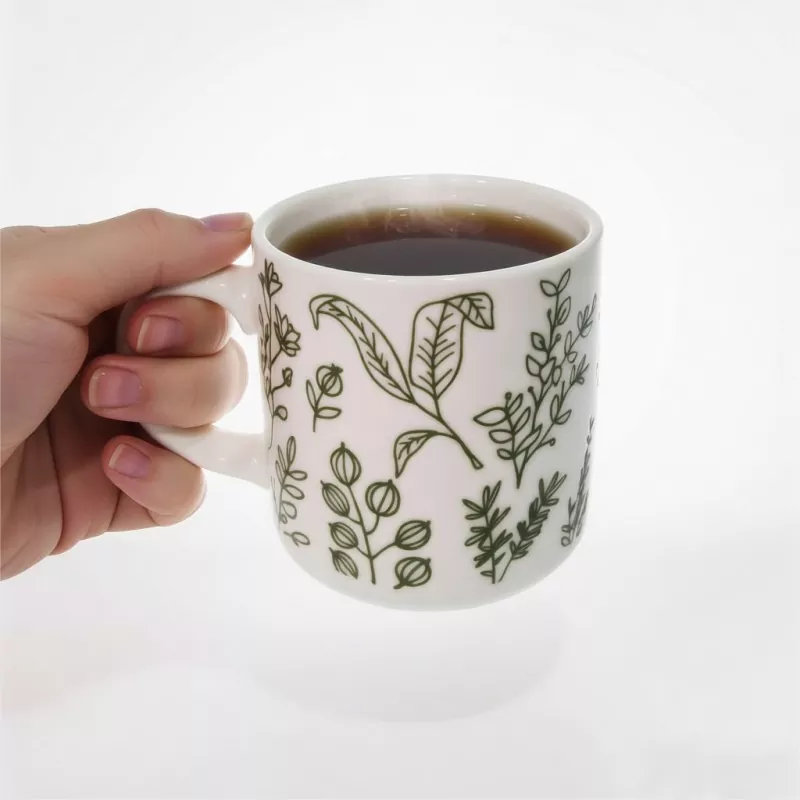 1. ဤခွက်တွင် ၎င်း၏အမြင်အာရုံဗဟိုချက်အဖြစ် ရိုးရှင်းပြီး သဘာဝစိမ်းလန်းသော ရုက္ခဗေဒပုံနှိပ်ပုံပါရှိသည်။