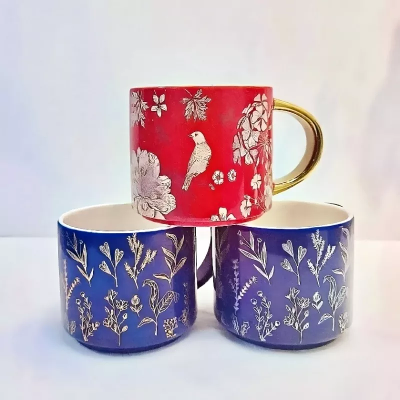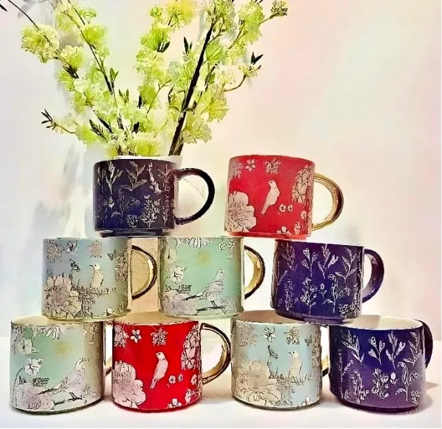 Electroplated Gold လက်ကိုင်နှင့်အတူဤကြွေထည်ထည်ကို decals နှင့်စေ့စပ်စွာဖြင့်ပြုလုပ်ထားသော, ပွင့်ပွင့်လင်းလင်းပန်းပွင့်များ၏နူးညံ့သိမ်မွေ့သောငှက်များ, သို့မဟုတ်သဘာဝအရောင်လုပ်ကွက်များ၏စွဲမက်လာသည့်ပုံစံများ, စတိုင်လ်တိုင်းနှင့်ကိုက်ညီရန်, ခွက်၏လက်ကိုင်သည်စိတ်ကြိုက်ပြုပြင်နိုင်သည်။ ရွှေပြားဗားရှင်းသည်ကြွယ်ဝသော, ရွှေရောင်အရောင်နှင့်ဆင်တူသည်, 18k Gold နှင့်ဆင်တူသည်, ၎င်းကိုသင်အကြိုက်ဆုံးအရောင်ကိုလည်းစိတ်ကြိုက်ပြုလုပ်နိုင်သည်။