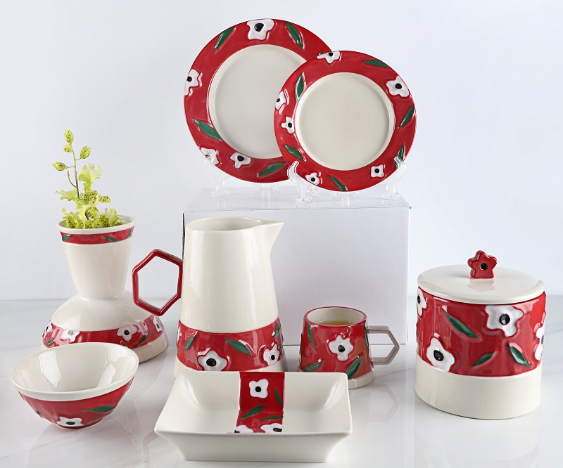 ညစာစားပွဲကြွေပြားအိမ်တွင်းလက်ဆောင်များသည်လက်ရာကြီးသောကြွေထည်ဝတ်စုံကိုအသုံးပြုသည်။ ပန်းကန်၏မျက်နှာပြင်သည်နူးညံ့သိမ်မွေ့သောတောက်ပသောခံစားမှု, ဒီဇိုင်းများသည်လတ်ဆတ်သော Florals, Auspical Motif မှစတိုင်ကျသောပထဝီအနေအထားမှစတိုင်ကျသောပထဝီမှစတိုင်ကျသည့်ပုံစံများကိုဖြည့်ဆည်းပေးပြီး,
