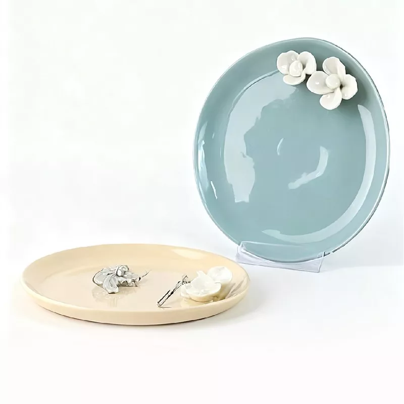 Minimalist Insta Ceramic လက်ဝတ်ရတနာပန်းကန်သည်အရောင်အမျိုးမျိုးနှင့်ပန်းပွင့်ဒီဇိုင်းများကိုရွေးချယ်ရန်ရွေးချယ်သည်။