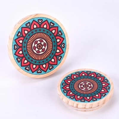 Byf ၏ချစ်စရာကောင်းတဲ့လက်မသေနတ်ဖြင့်ဂတေ်တုဖော်ရွေသောသစ်သားပြားများသည်သဘာဝသစ်သားဘောင်များနှင့်ရောင်စုံဝါဂွမ်းချည်များမှယက်ကြသည်။ တစ်ခုချင်းစီတွင်ထူးခြားသောအရောင်များ, ကြွယ်ဝသောအရောင်များနှင့်နွေးထွေးသောလက်လုပ်ခံစားရခြင်းကဲ့သို့သောထူးခြားသောသုံးဖက်မြင်ပုံစံများပါ 0 င်သည်။ သစ်သားအနားအနားများကိုဂရုတစိုက်ဝိုင်းရံထားသည်။ အဖုံးသည် sealant တစ်ခုအနေဖြင့်သဘာဝ coaster တစ်ခုဖြစ်သည့်ခြေဆန်းခတ်သူတစ် ဦး အနေနှင့်ပြုမူသည်။ ထမင်းစားပွဲတစ်ခုသို့မဟုတ်ကော်ဖီစားပွဲပေါ်တင်ထားသည့်အခါ၎င်းသည်အေးဆေးတည်ငြိမ်သောသစ်သားအင်္ဂါရပ်ထဲသို့ပြောင်းလဲပြီးနေ့စဉ်ဘဝ၏ထိတွေ့မှုကိုပေါင်းသင်းစေသည်။