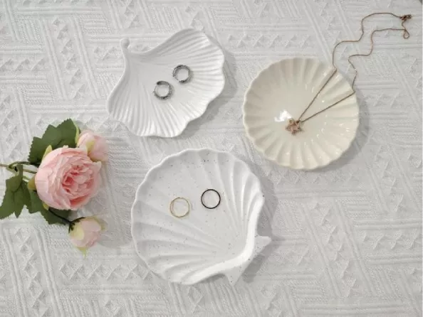ByF ၏ Shell နှင့် Starfish Warnic လက်ဝတ်ရတနာ Tray Tray Tray Tray Tray Series စီးရီးများသည်နူးညံ့သိမ်မွေ့သောကြွေထည်များကိုအဏ္ဏဝါဒြပ်စင်များ၏စိတ်ကူးယဉ်ဆန်သောပေါင်းစုံနှင့်အတူနူးညံ့သိမ်မွေ့သောဖွဲ့စည်းပုံကိုလိမ္မာပါးနပ်စွာရောစပ်သည်။ ဒီဇိုင်နာသည်ကြယ်ငါးပွင့်များအားကြွေပြားများဖြင့်ထုတ်ဖော်ပြောဆိုခြင်းနှင့်လှုံ့ဆော်မှုအဖြစ်တွန်းထုတ်ခြင်း, ကြယ်ငါးပွင့်သည်သုံးဖက်မြင်။ unduenating, starburst silhouette, starburst silhouette, ၎င်း၏ undulating texture သည်လှိုင်းတံပိုးများကိုရိုက်နှက်ခြင်းကိုအမှတ်ရပုံရသည်။ အခွံပုံစံသည်သဘာဝအခွံများ၏ကြီးထွားမှုပုံစံကိုအကောင်အထည်ဖော်နိုင်သည့်ချောချောမွေ့မွေ့, ၎င်း၏ glaze သည်ကမ်းခြေသဲများကဲ့သို့ပျော့ပျောင်းသောကြောင့်နူးညံ့သိမ်မွေ့သောလက်ဝတ်ရတနာတစ်ဖြာကိုညင်ညင်သာသာထောက်ပံ့သည်။