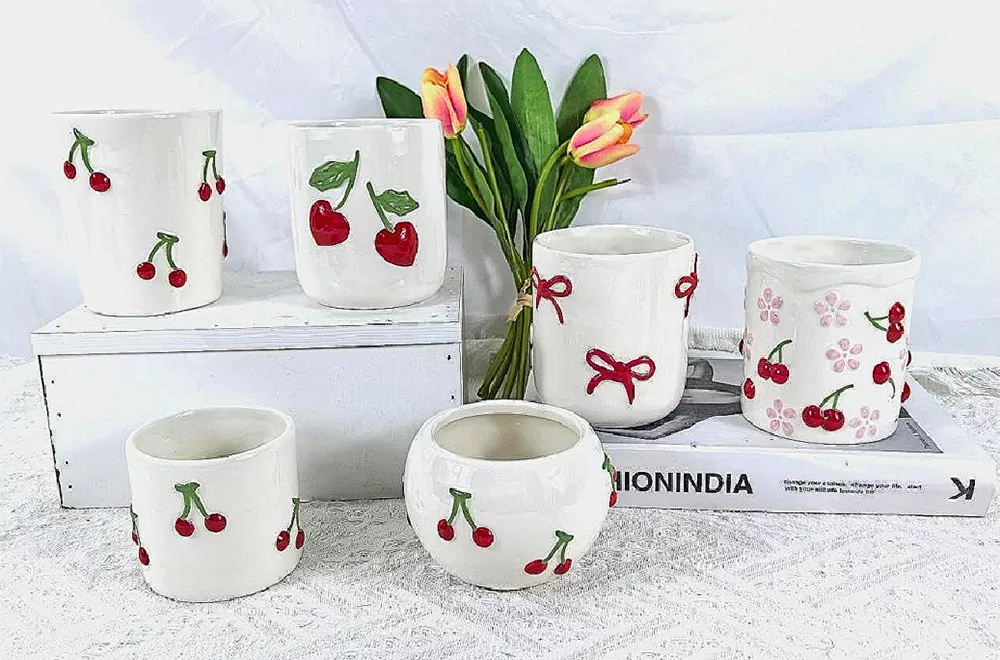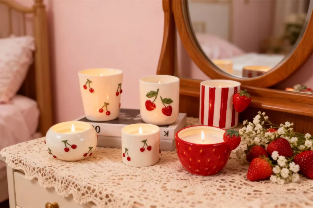 ByF ၏ Super Adorable Ceramic ဖယောင်းတိုင်အိုးဂေးကပ်ကားများတပ်ဆင်ထားသည်။ ဒီဇိုင်းများတွင်အနီရောင်ချယ်ရီသီး, သုံးဖက်မြင်လေးလေးများနှင့်စတော်ဘယ်ရီ, လုံခြုံစိတ်ချရသောနှင့်သဘာဝပတ်ဝန်းကျင်ထိန်းသိမ်းရေးပစ္စည်းများဖြင့်ပြုလုပ်ထားသောကြောင့်၎င်းသည်အပူရှိန်ခံမှုရှိပြီးစံနှုန်းများနှင့်ဖယောင်းအခြေတိုင်များနှင့်သင်၏အိမ်အလှဆင်မှုကိုတိုးမြှင့်စေသောအနုပညာအလှဆင်ပစ္စည်းများကိုပြုလုပ်သည်။
